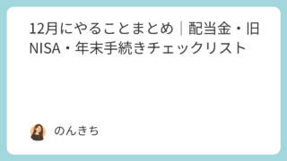 12月は配当金が入るうれしい季節。その一方で、旧NISAの扱いやふるさと納税など年末に確認したいこともあります。忙しい年末に最低限やっておきたいことを分かりやすくまとめました。