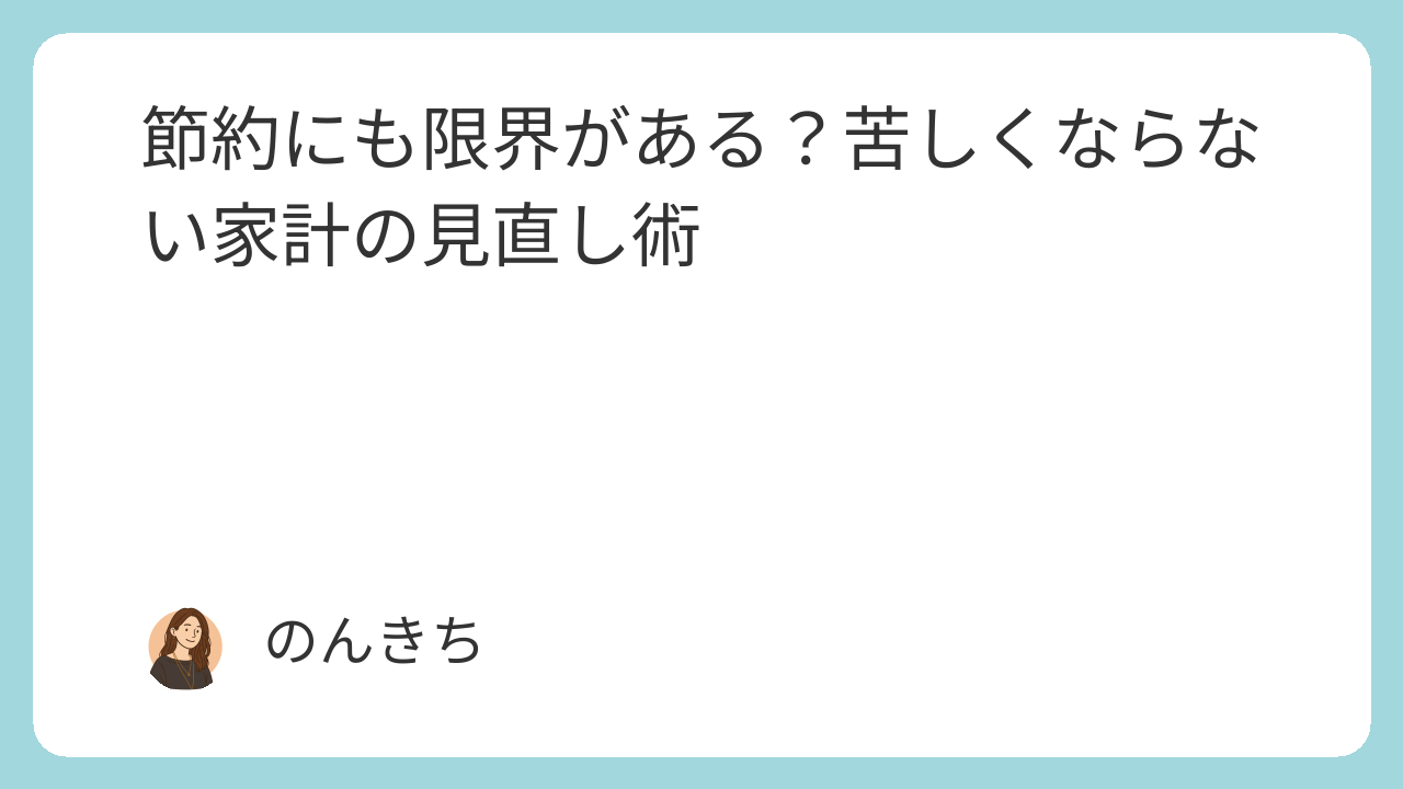 節約は大切。でも、限界を感じるのは頑張っている証拠です。