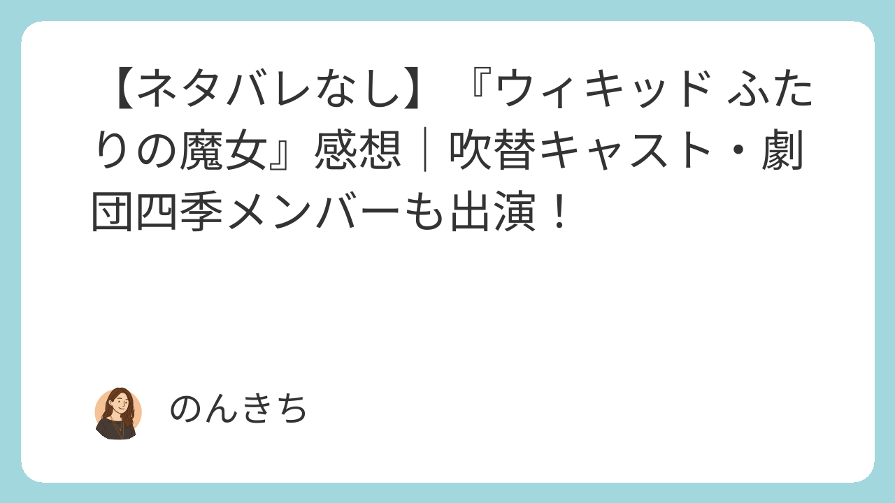 劇団四季ファンとしては、岡村美南さんと谷原志音さんが出演されているのも、とても胸が熱くなるポイントでした。公式ニュースはこちら